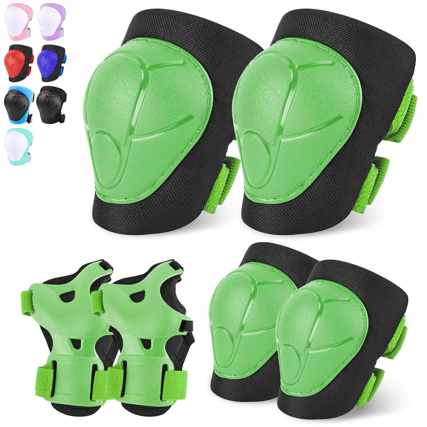 - Suits Your Kids: Small size is suitable for 3-8 years old kids; Medium size is suitable for 8-13 years old kids; The adjustable elastic straps ensure freedom of movement during sports; The knee pads and elbow pads set is easy to wear by themselves